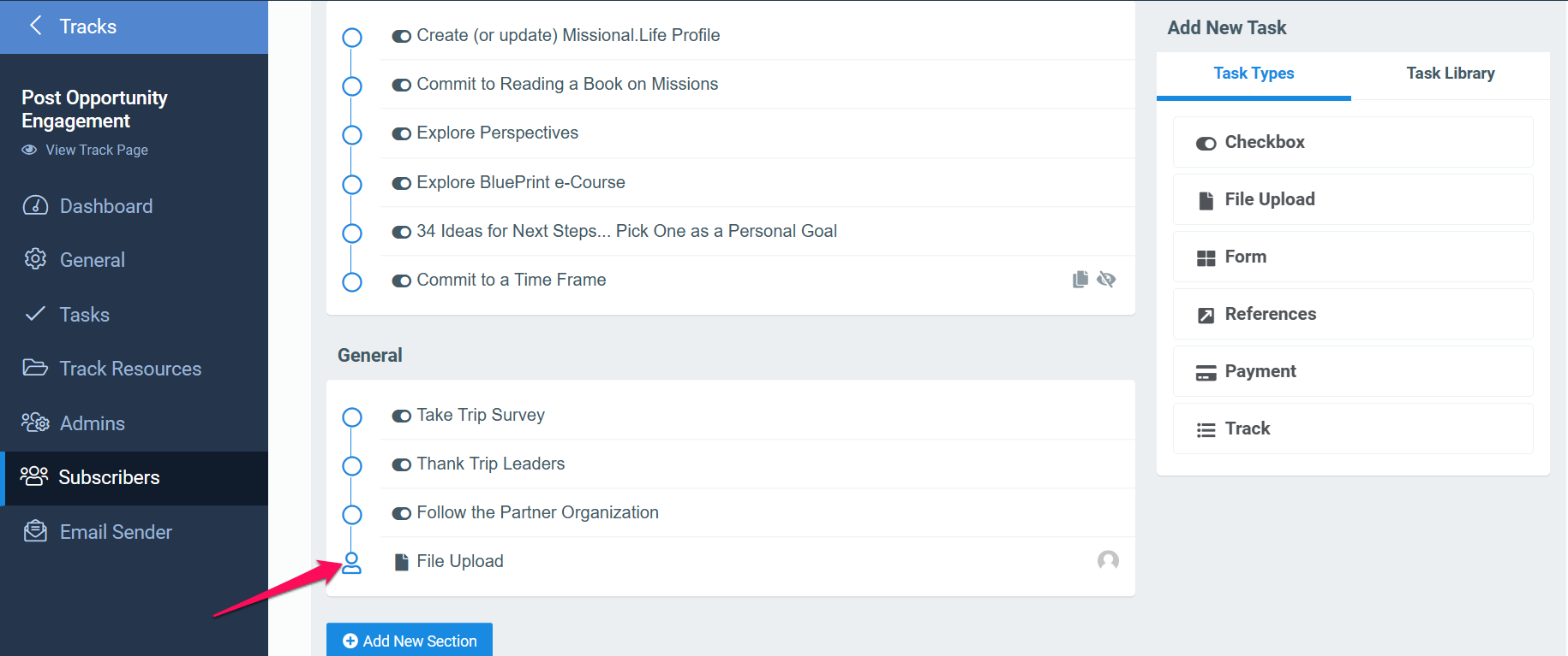 Each track that you create has the tasks that you can attached to that track. Every subscriber to the track will automatically have each task as it shows in the original track. But what if you need someone to complete an additional task, but not every subscriber?