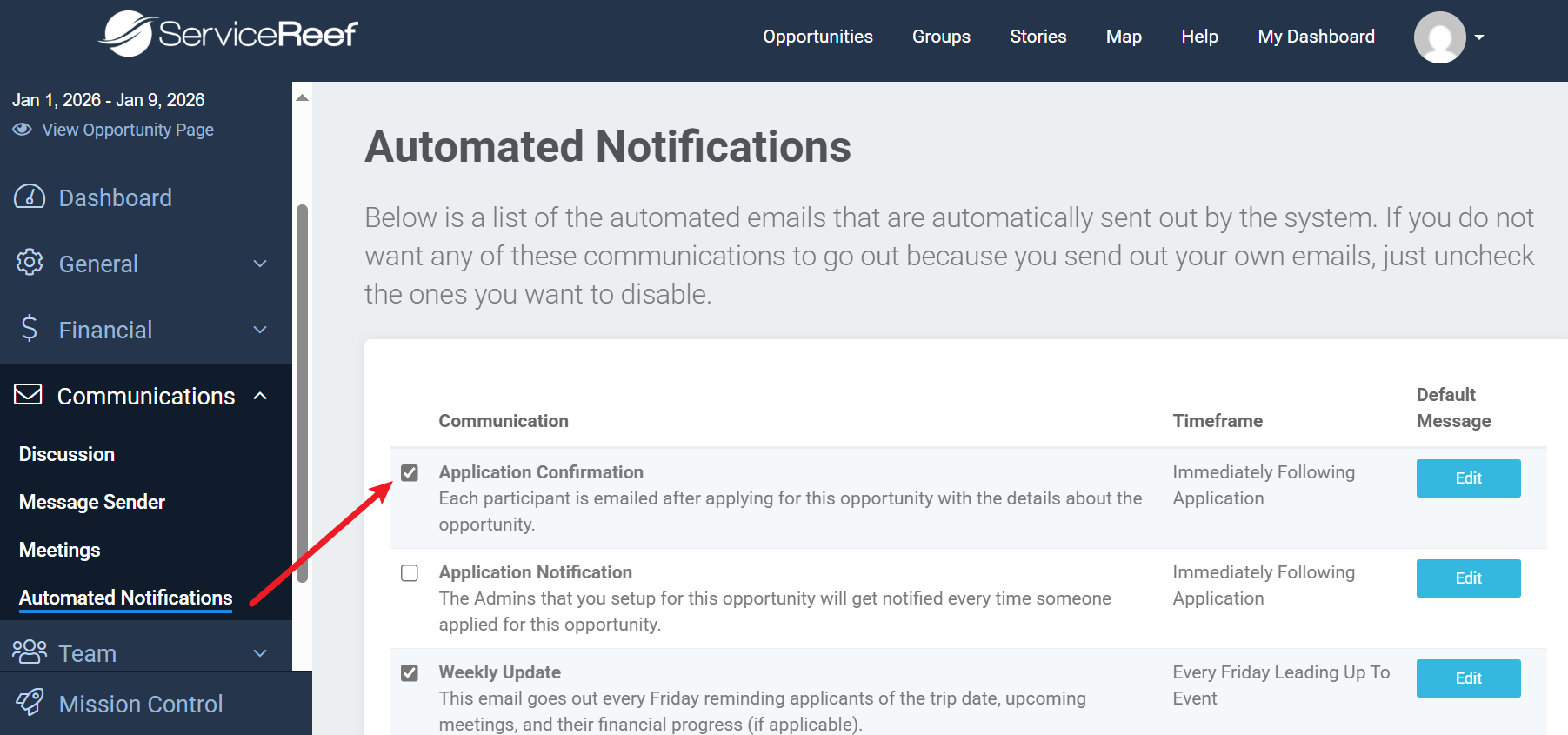 This article walks you through how to manage your automated email notifications in ServiceReef — including how to turn specific notifications on or off and how to edit the default text (if your subscription level allows customization).
